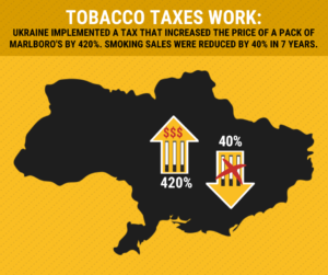 Graphic about the positive impact of tobacco tax in country. Graphic can be modified in Canva to reflect your country.